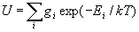 3. Число атомов или ионов, находящихся в произвольном возбужденном состоянии k (заселенность состояния k ), определяется формулой Больцмана:N k=N0 (gk/g0 ) exp(-Ek/kT) = N(gk /U) exp(-Ek/kT). (4)Здесь N0 - заселенность основного состояния; g0 - статистический вес этого состояния; gk - статистический вес возбужденного состояния; Ek - энергия возбужденного состояния, отсчитываемая от основного уровня. Суммы по состояниям ионов и атомов